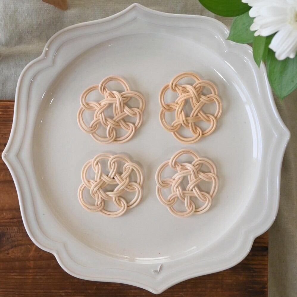 かご編みなどに使う籐(ラタン)を結って作ったブローチです