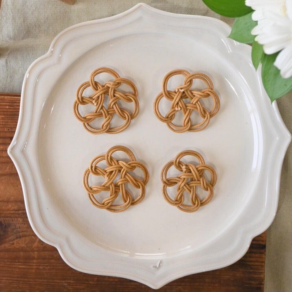 かご編みなどに使う籐(ラタン)を結って作ったブローチです