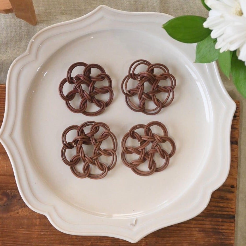 かご編みなどに使う籐(ラタン)を結って作ったブローチです