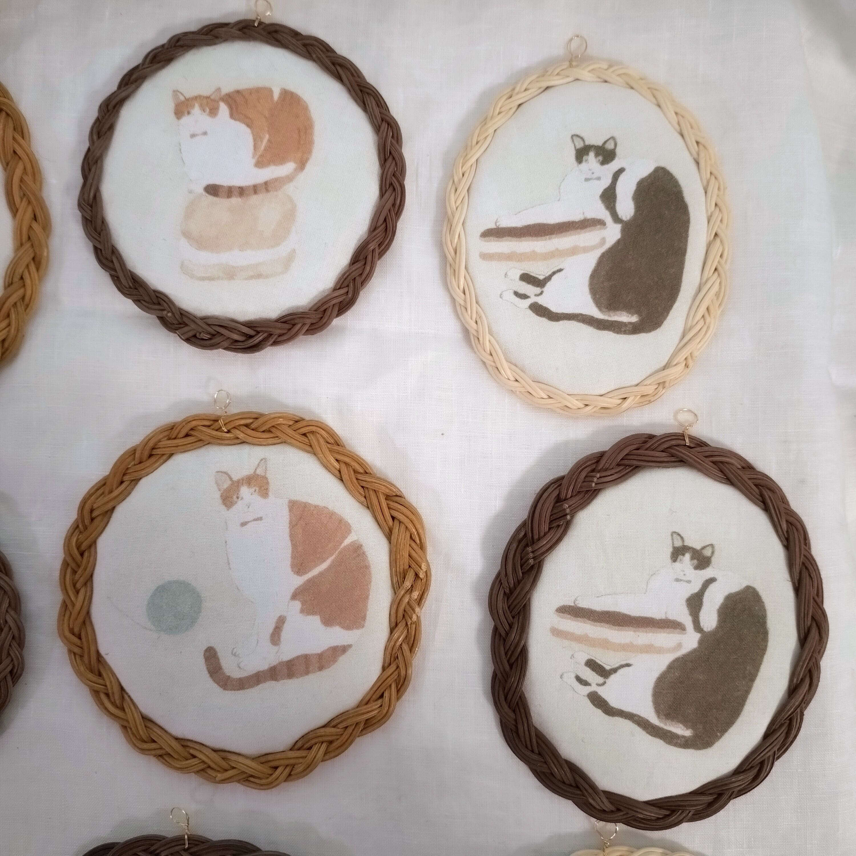ラタンも布も軽いので虫ピンや、工夫すればマスキングテープでも壁に貼れそうです。