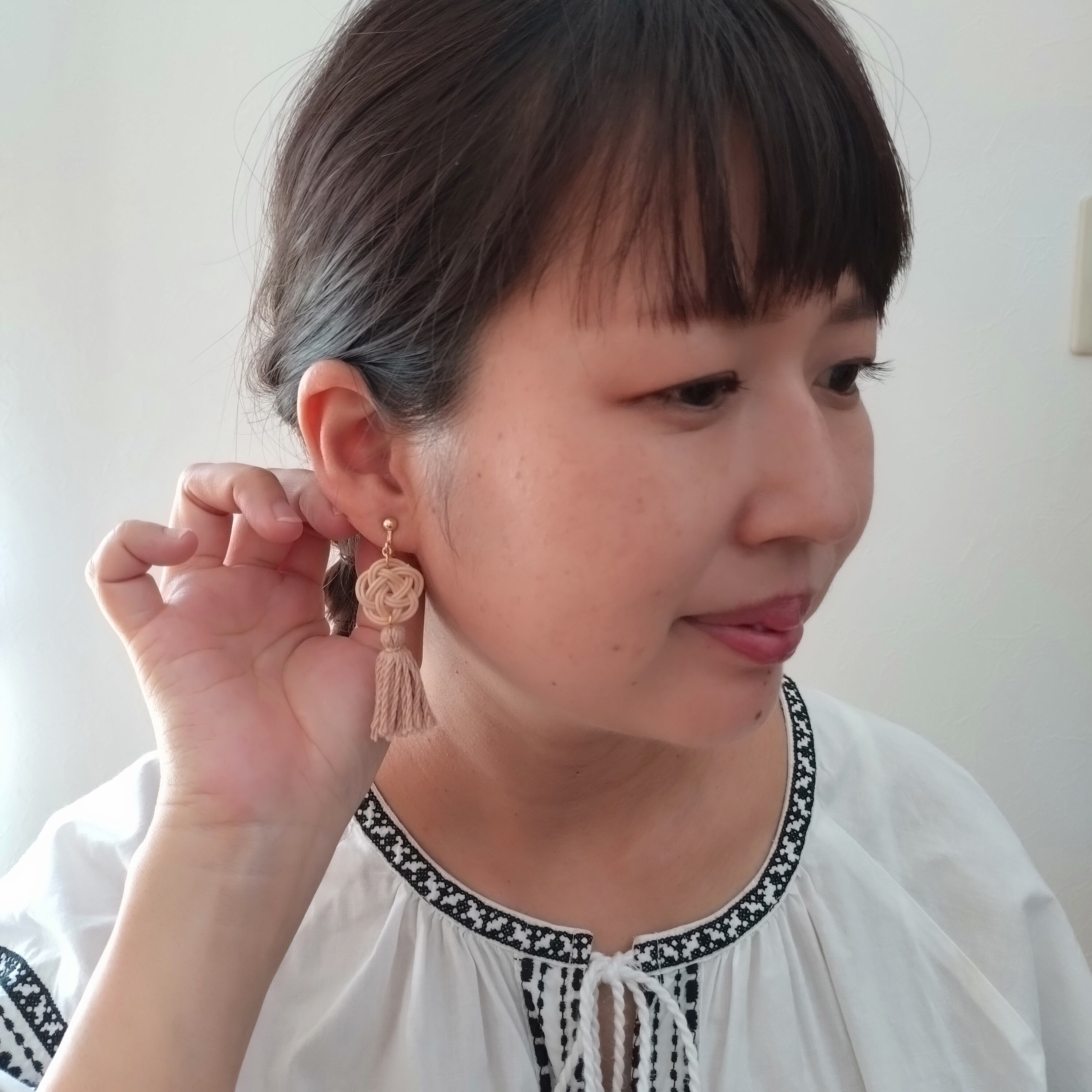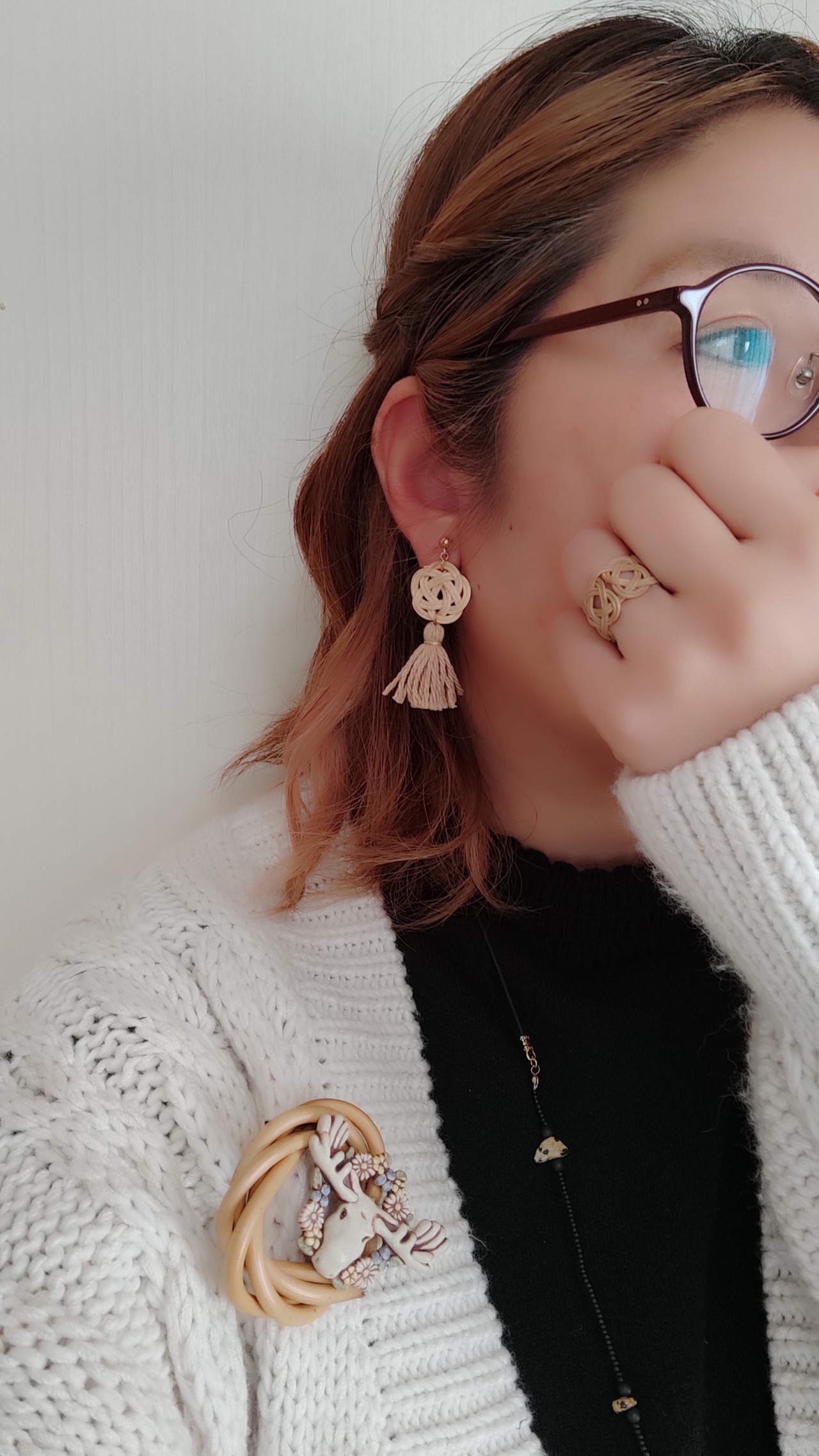 かご編みなどに使う籐(ラタン)を結って作った耳飾りです
